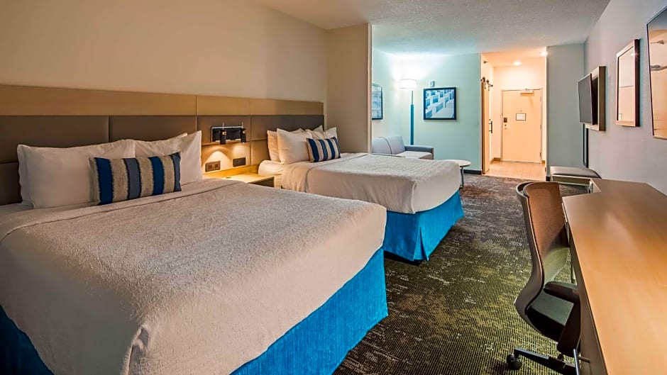 On the practical side, the stay keeps travel easy with free wifi and free on-site parking, plus an indoor heated pool for adults, a fitness center, and a free business center to handle work needs. Room service is available, and a 24-hour front desk helps with arrivals around the clock. Non-smoking rooms and elevator access add comfort, while meeting/banquet facilities and a golf course can be arranged for an extra fee. Pets are welcome, with charges possibly applying, making it a flexible stop for guests with furry companions.